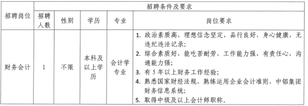 云南云鋁匯鑫經(jīng)貿(mào)有限公司公開招聘財(cái)務(wù)會(huì)計(jì)人員的公告