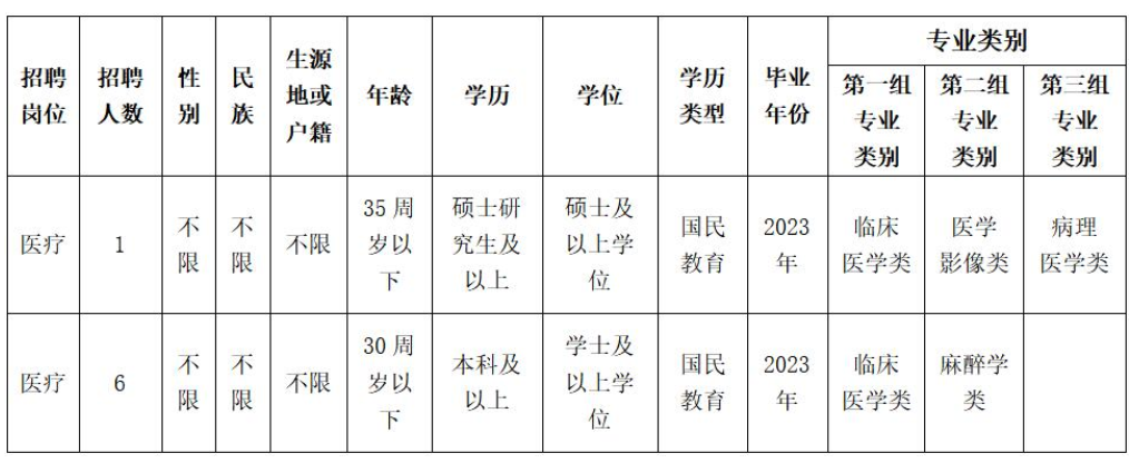 高等院校醫(yī)學(xué)類本科及以上學(xué)歷畢業(yè)后直接參加國家計劃內(nèi)住院醫(yī)師規(guī)范化培訓(xùn),2023年國家住院醫(yī)師規(guī)范化培訓(xùn)合格且具有國家執(zhí)業(yè)醫(yī)師資格,參加醫(yī)療衛(wèi)生行業(yè)招聘醫(yī)學(xué)類崗位的,視為2023年度應(yīng)屆畢業(yè)生(資格復(fù)審時須提供成績單、合格證明,否則取消聘用資格)。