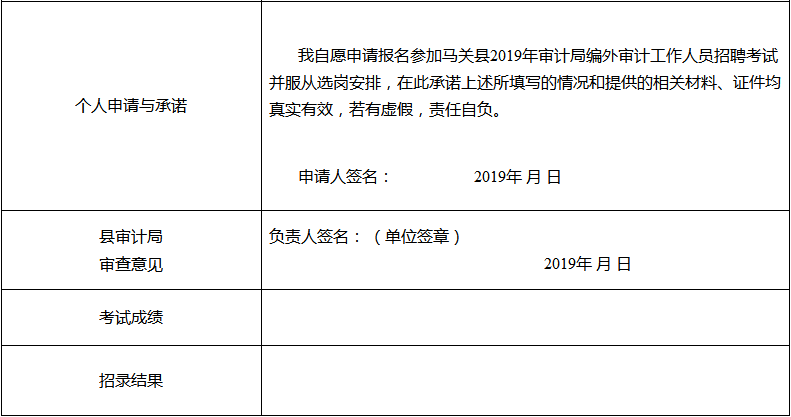 2019年馬關縣審計局公開招聘編外審計工作人員報名表