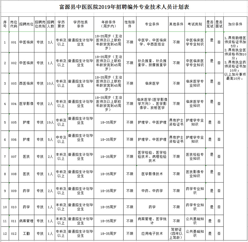 詳見附件《富源縣中醫(yī)醫(yī)院2019年招聘編外專業(yè)技術(shù)人員計劃表》。