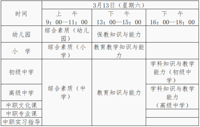 (二)考試時間:2021年3月13日,所有考試科目均采用紙筆方式進行,具體安排如下: